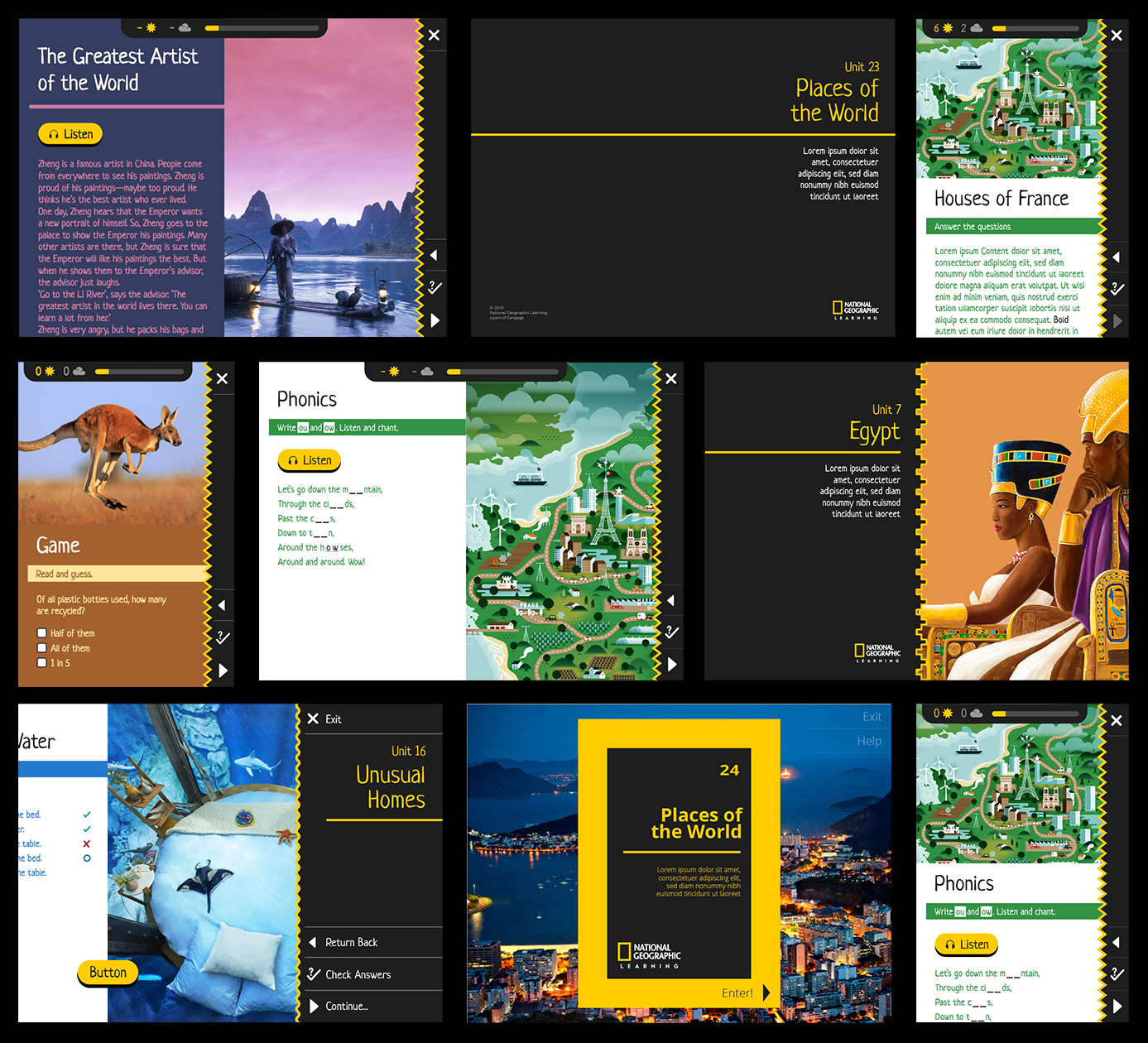 National Geographic Learning (USA), 2018, design of e-lessons skin