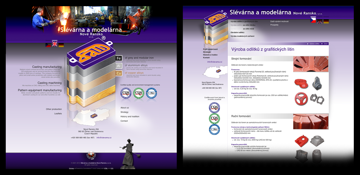 Aluminium Foundry Nové Ransko (Czech Republic), 2008-2016, complete website with maintenance